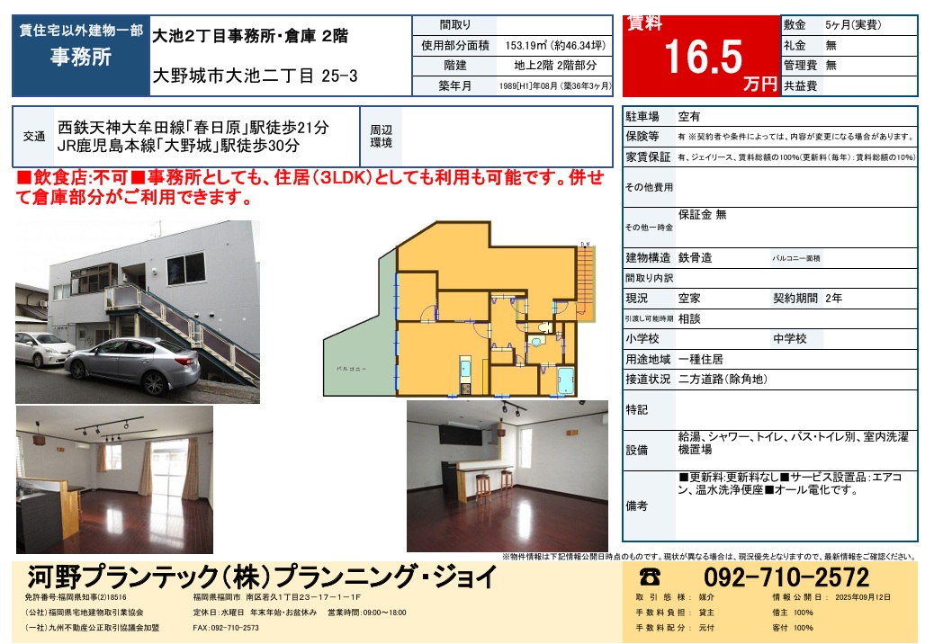 >借りたい>大野城市大池二丁目 2階 事務所・倉庫の詳細