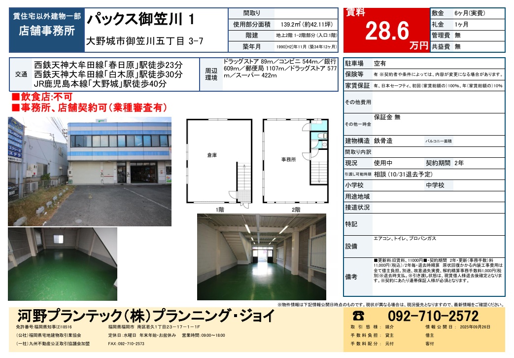 大野城市御笠川五丁目 1~2階(メゾネット) 店舗・事務所