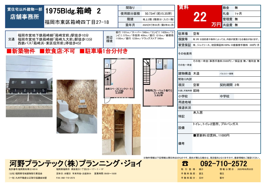 >借りたい>福岡市東区箱崎四丁目 1~2階(メゾネット) 店舗・事務所の詳細