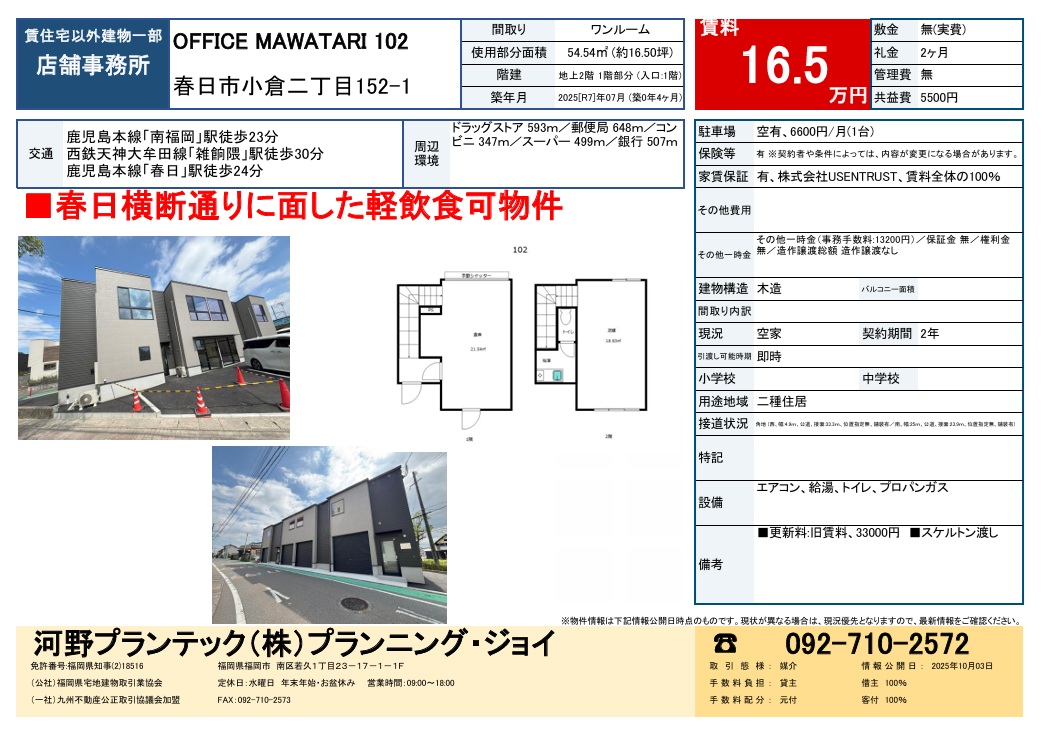 - ※「春日横断通り」に面した軽飲食可物件