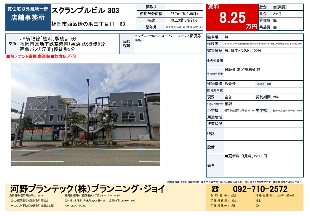 福岡市西区姪の浜三丁目 3階 店舗・事務所