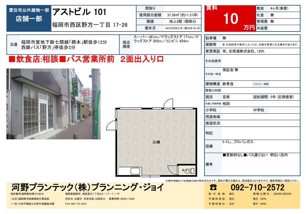 >借りたい>福岡市西区野方一丁目 1階 店舗・事務所の詳細