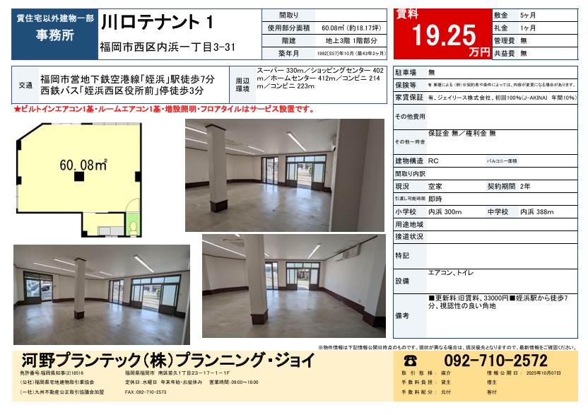 >借りたい>福岡市西区内浜一丁目 1階 事務所の詳細