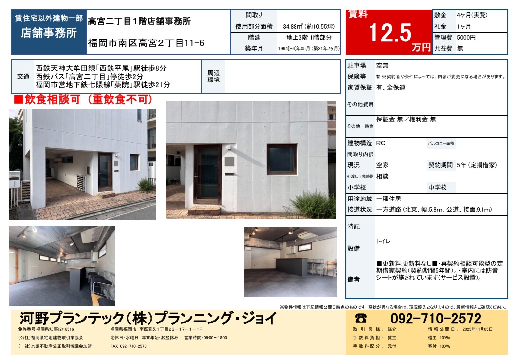 福岡市南区高宮二丁目 1階 店舗・事務所