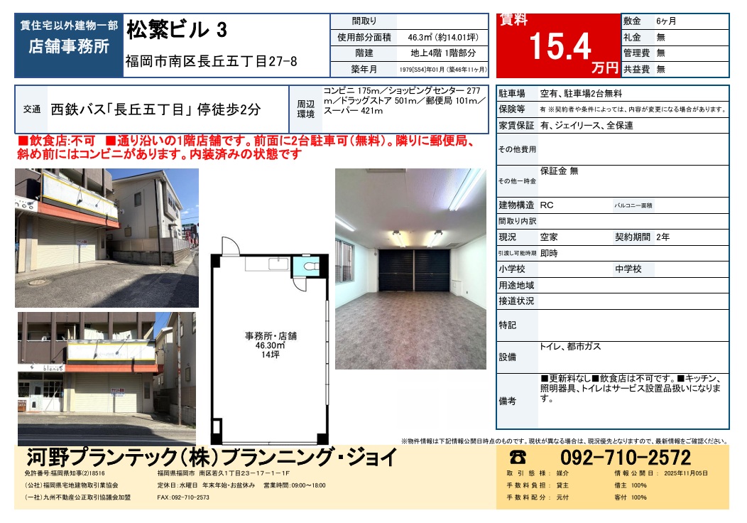 福岡市南区長丘五丁目 1階 店舗・事務所