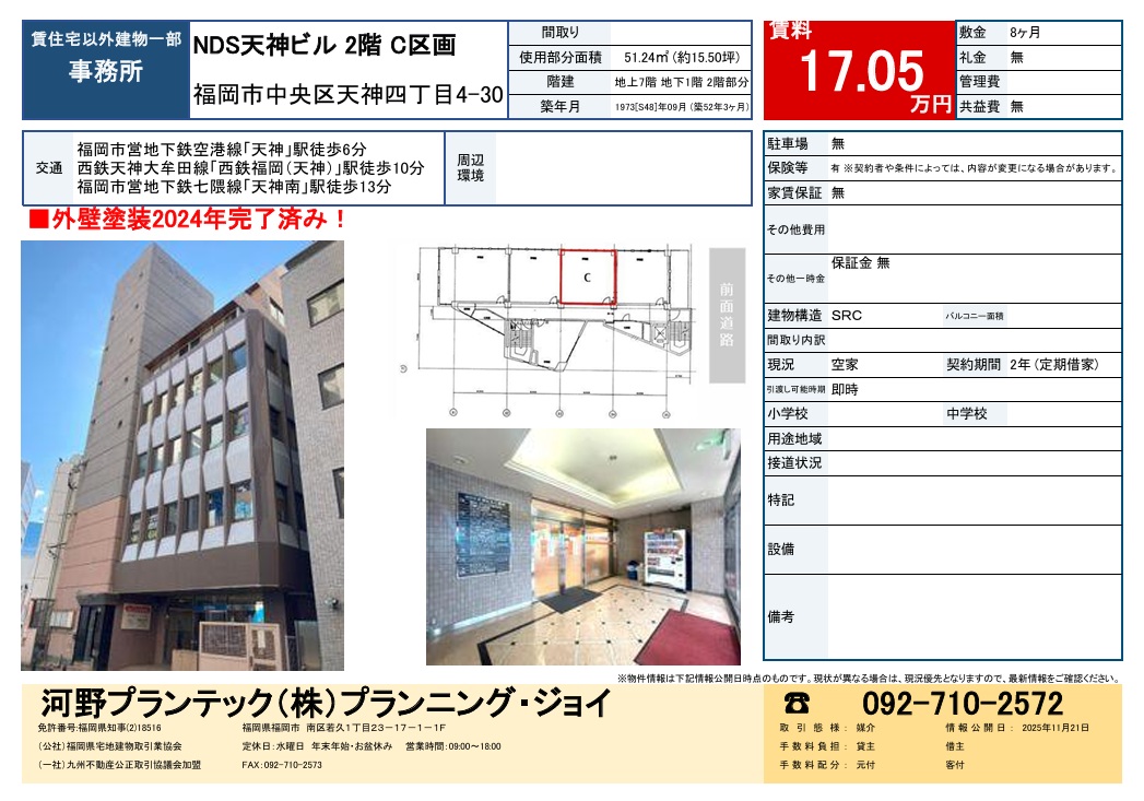 >借りたい>福岡市中央区天神四丁目 2階 事務所の詳細