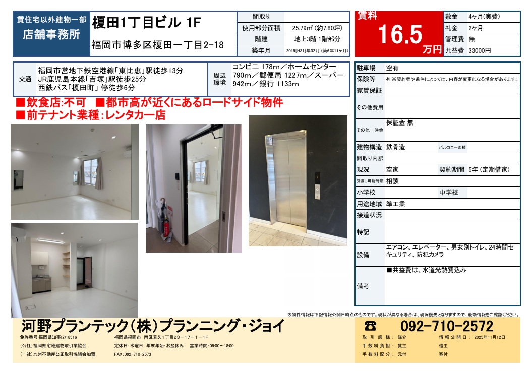 福岡市博多区榎田一丁目 1階 店舗・事務所