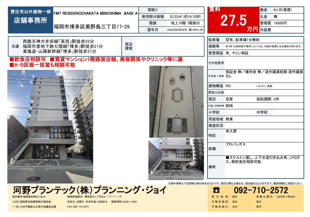 >借りたい>福岡市博多区美野島三丁目 1階 店舗・事務所の詳細