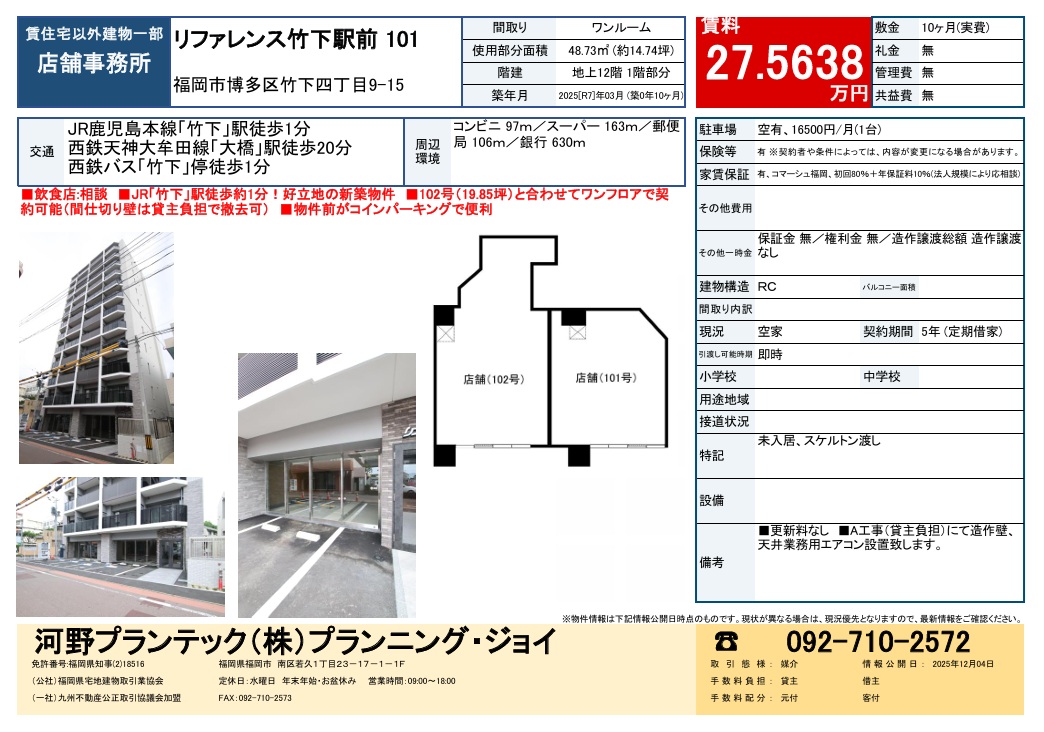 ※JR竹下駅徒歩1分の新築路面店舗事務所