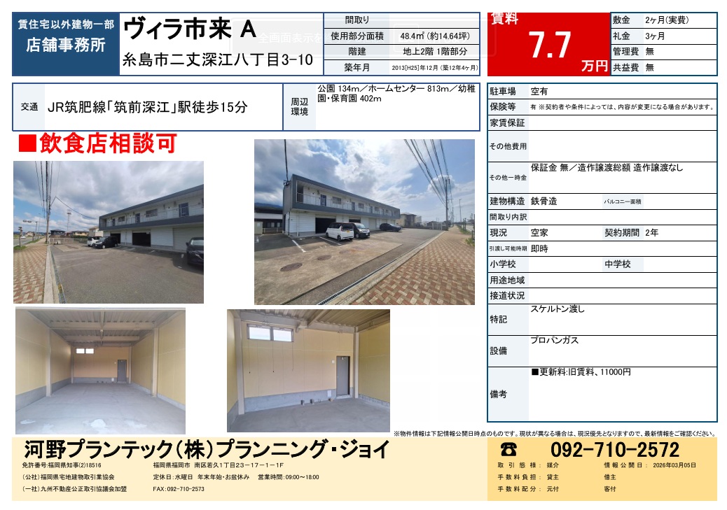 糸島市二丈深江八丁目 1階 店舗・事務所