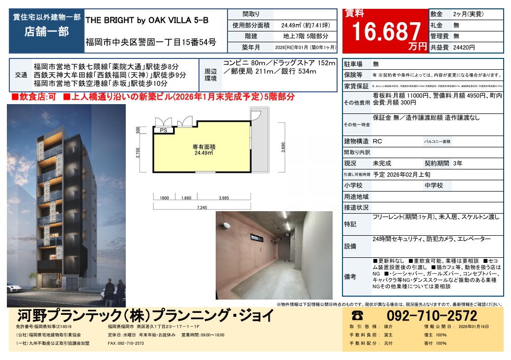 ※上人橋通り沿いの新築ビルの5階部分、2026年1月末完成予定