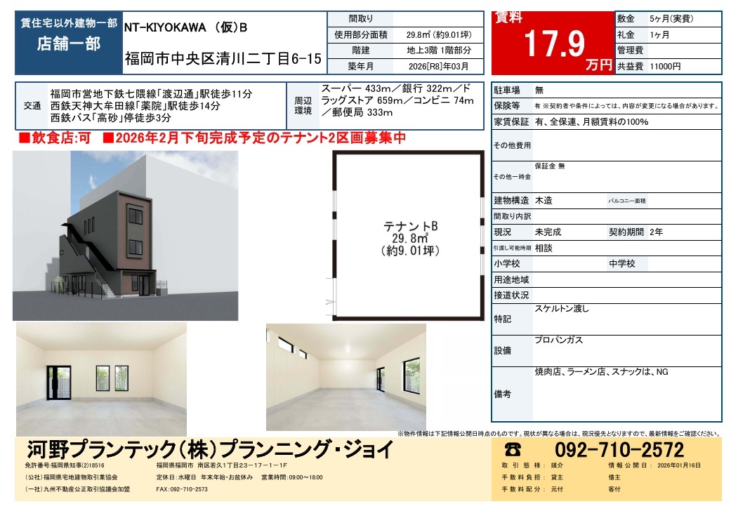 福岡市中央区清川二丁目 1階 店舗
