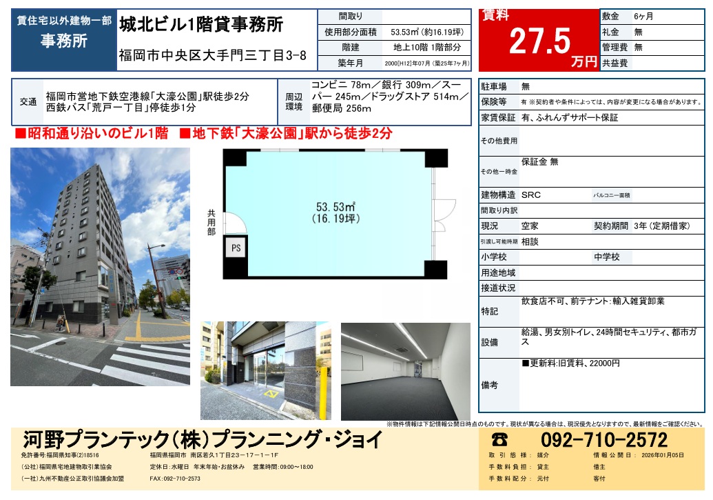福岡市中央区大手門三丁目 1階 事務所