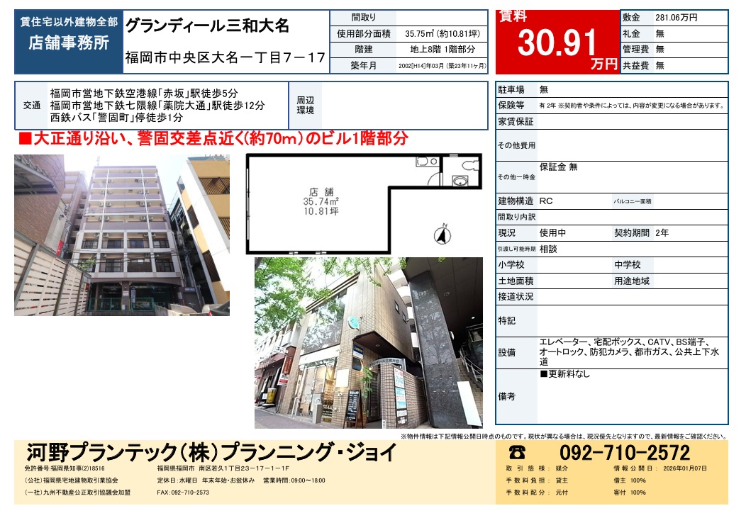福岡市中央区大名一丁目 1階 店舗・事務所