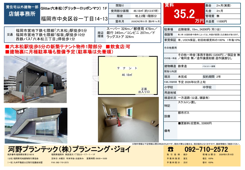 - ※地下鉄六本松駅徒歩5分の新築テナント物件1階部分