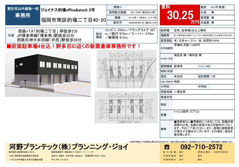 福岡市南区的場二丁目 1~2階(メゾネット) 事務所30.25万円- 物件種別