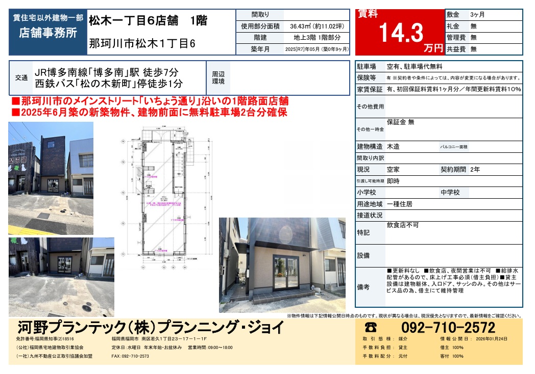 - ※那珂川市のメインストリート「いちょう通り」沿いの1階路面店舗