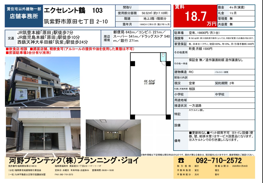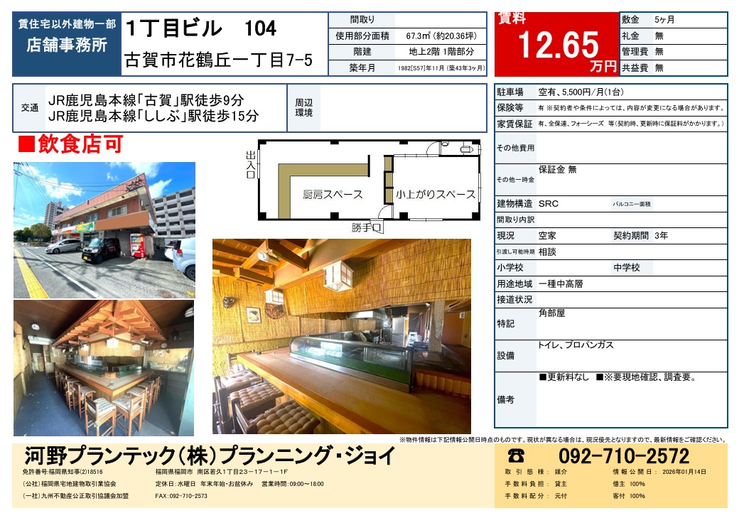 古賀市花鶴丘一丁目 1階 店舗・事務所
