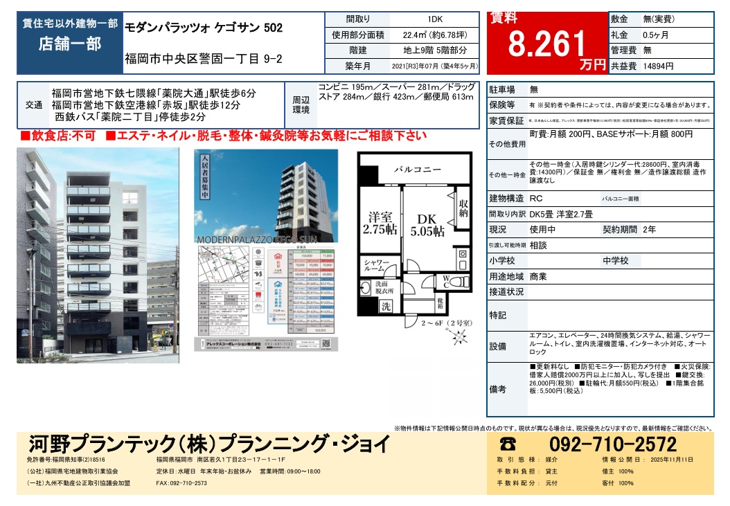 福岡市中央区警固三丁目 5階 店舗8.261万円- 物件種別