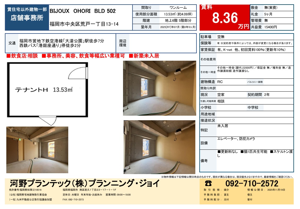 福岡市中央区荒戸一丁目 5階 店舗・事務所8.36万円- 物件種別